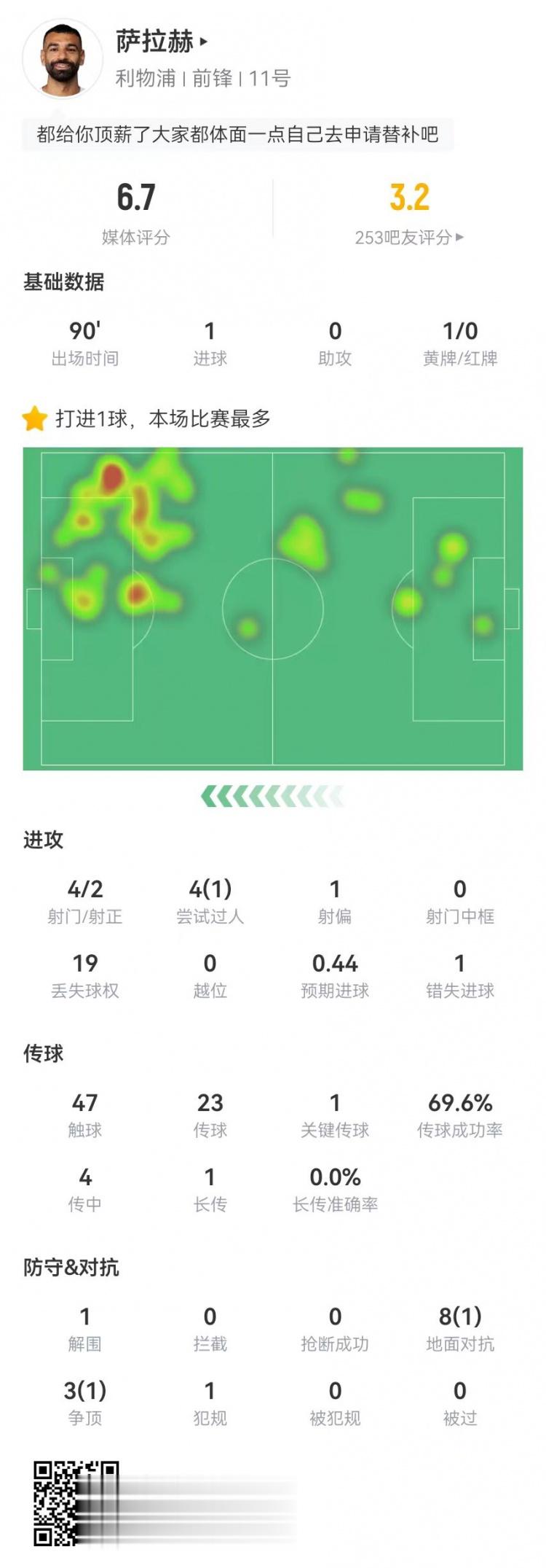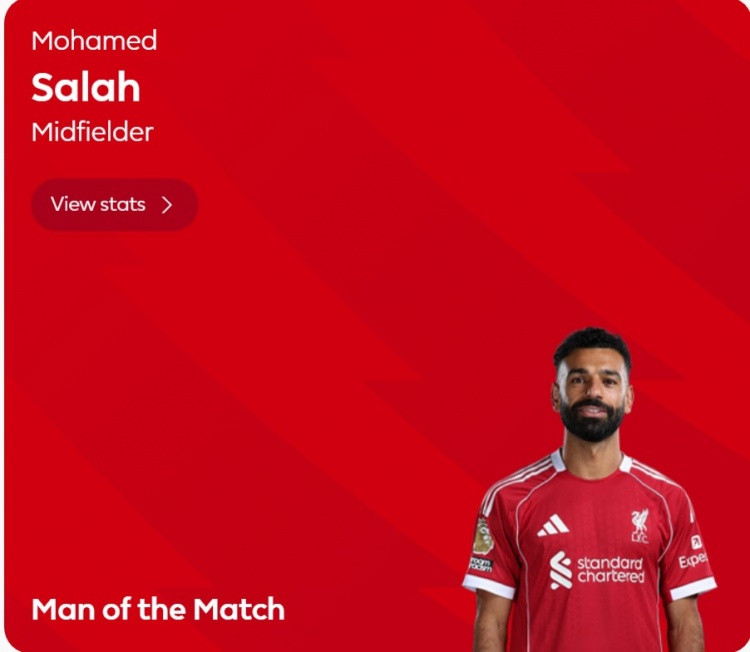 此役萨拉赫为利物浦踢满全场,打进1球,英超官方宣布,他当选本场比赛球迷票选全场最佳球员。